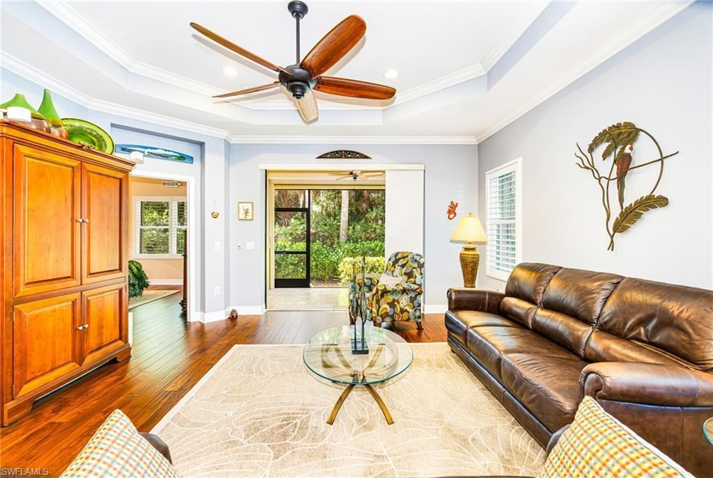 This pristine 2-bedroom plus den, 2-bath attached villa with a 2-car garage stands out in Villa Palmeras thanks to its premium corner lot, desirable side yard, and peaceful preserve view. The screened lanai with sought-after southwest exposure creates the perfect setting to relax and enjoy the Florida lifestyle. Thoughtfully upgraded with more than $60,000 in improvements, the home features rich walnut, travertine, and tile flooring, custom-designed closets, premium Silestone kitchen countertops...This pristine 2-bedroom plus den, 2-bath attached villa with a 2-car garage stands out in Villa Palmeras thanks to its premium corner lot, desirable side yard, and peaceful preserve view. The screened lanai with sought-after southwest exposure creates the perfect setting to relax and enjoy the Florida lifestyle. Thoughtfully upgraded with more than $60,000 in improvements, the home features rich walnut, travertine, and tile flooring, custom-designed closets, premium Silestone kitchen countertops, a travertine backsplash, granite bath countertops, and designer kitchen appliances plus washer and dryer. The flexible den offers ideal space for a home office, reading room, or overflow guest area. Peace of mind comes with accordion hurricane shutters, a hot water heater approximately 9 months old, and a 3-year-old AC system. The corner location also has additional guest parking nearby. Behind the secure gated entrance, Villa Palmeras residents enjoy a resort-style pool and spa with covered cabanas, a BBQ area, and a scenic 300-foot elevated boardwalk through the preserve. Conveniently located near I-75, this community provides quick access to Naples, Fort Myers, Southwest Florida’s beautiful beaches, RSW International Airport, Coconut Point, Gulf Coast Town Center, Miromar Outlets, Hertz Arena, FGCU, and top-rated medical facilities.