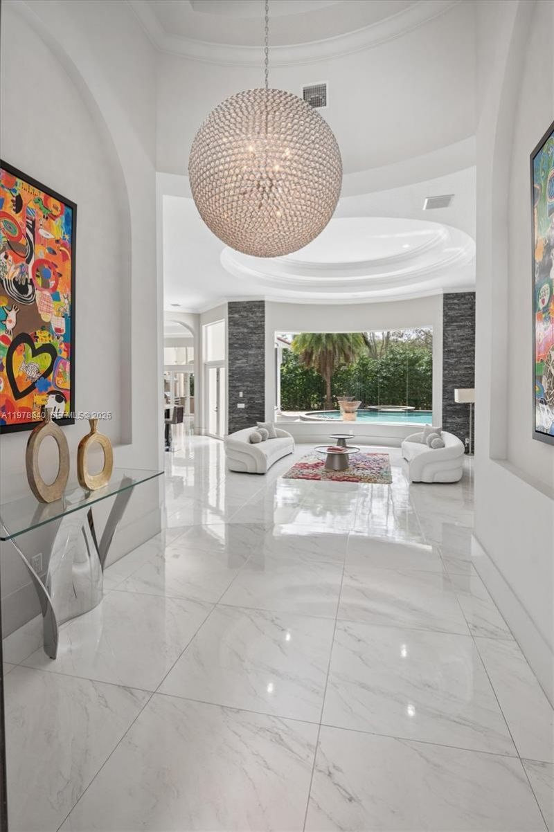 Located in the prestigious enclave of Grand Oak Estates, this residence offers luxurious spaces, architectural distinction, and modern comfort. Enter through elegant iron gates to discover one of only 32 homes in this exclusive community.The residence spans nearly 6,000 square feet and was originally built in 2007, with an interior refurbish completed in 2016 featuring bespoke Italian design elements. The result is an elegant living environment that blends timeless elements with contemporary sty...Located in the prestigious enclave of Grand Oak Estates, this residence offers luxurious spaces, architectural distinction, and modern comfort. Enter through elegant iron gates to discover one of only 32 homes in this exclusive community.The residence spans nearly 6,000 square feet and was originally built in 2007, with an interior refurbish completed in 2016 featuring bespoke Italian design elements. The result is an elegant living environment that blends timeless elements with contemporary style.The features a great movie room and showcases a gourmet kitchen appointed with premium Viking appliances. Additional features include a private executive office, hurricane-impact windows and doors, a dedicated home theater, and advanced water systems including softening and reverse osmosis filtration.Outdoor living is ready for relaxation and entertaining, highlighted by a vanishing-edge heated saltwater pool and an expansive patio area with lush trees. A fully equipped summer kitchen, beer tap system, outdoor television, and integrated sound system create a true resort-style experience for everyday living.