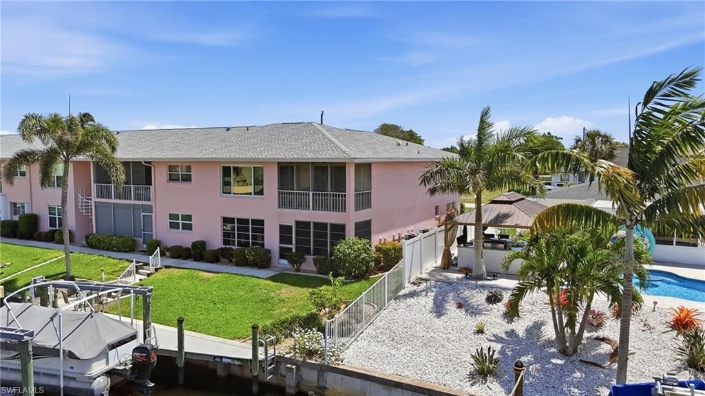 $5,000 credit at closing plus a future boat slip dedicated to the unit, with the assessment already paid in full, set this second-floor end unit apart in a well-maintained 55+ Gulf access community just minutes from downtown Cape Coral.This spacious condo is being sold partially furnished and includes a one-car garage conveniently located just steps from the front entrance. Positioned on the second floor, it offers added peace of mind along with end-unit privacy and abundant natural light throug...$5,000 credit at closing plus a future boat slip dedicated to the unit, with the assessment already paid in full, set this second-floor end unit apart in a well-maintained 55+ Gulf access community just minutes from downtown Cape Coral.This spacious condo is being sold partially furnished and includes a one-car garage conveniently located just steps from the front entrance. Positioned on the second floor, it offers added peace of mind along with end-unit privacy and abundant natural light throughout.The interior features an open living and dining area that flows seamlessly to a screened or enclosed lanai overlooking the canal. The kitchen is well laid out with ample cabinet storage, a pantry, a window over the sink, and a full set of appliances.The guest bedroom includes a space-saving Murphy bed, a generous closet, and access to a private guest bathroom. The primary suite is positioned along the canal and offers direct lanai access, a walk-in closet, and an ensuite bathroom with a large walk-in shower.A separate laundry room provides a full-size washer and dryer along with additional storage.Significant updates have already been completed, including impact-resistant windows, a new roof, 2020 HVAC system with updated ductwork, 2020 plumbing, a 2020 electrical panel, fresh interior paint, and new light fixtures throughout.The planned community dock and boat slips add future Gulf access value, with the assessment fully paid by the seller. Combined with the $5,000 closing credit, this property presents an excellent option for both seasonal and year-round living.