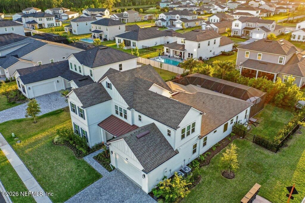 This elegant Julington plan home in Bartram Ranch offers a spacious and thoughtfully designed layout, complete with a beautifully screened pool, perfect for both everyday living and entertaining. Step inside the 2 story foyer to find an open-concept floor plan filled with natural light, complemented by upgraded finishes like floating shelving, white oak flooring and halo lighting throughout. The gourmet kitchen is a true centerpiece with double stack cabinetry, gas stove top, sleek quartz counte...This elegant Julington plan home in Bartram Ranch offers a spacious and thoughtfully designed layout, complete with a beautifully screened pool, perfect for both everyday living and entertaining. Step inside the 2 story foyer to find an open-concept floor plan filled with natural light, complemented by upgraded finishes like floating shelving, white oak flooring and halo lighting throughout. The gourmet kitchen is a true centerpiece with double stack cabinetry, gas stove top, sleek quartz countertops, and a generous island, ideal for meal prep or casual gatherings. The adjoining living area with a white brick gas fireplace, and dining area create a seamless flow, making hosting friends and family effortless. Additionally the downstairs features the owner's suite, a guest suite, office, a refined flex space, and half bath. This house is more than a home; it's a statement of luxury.