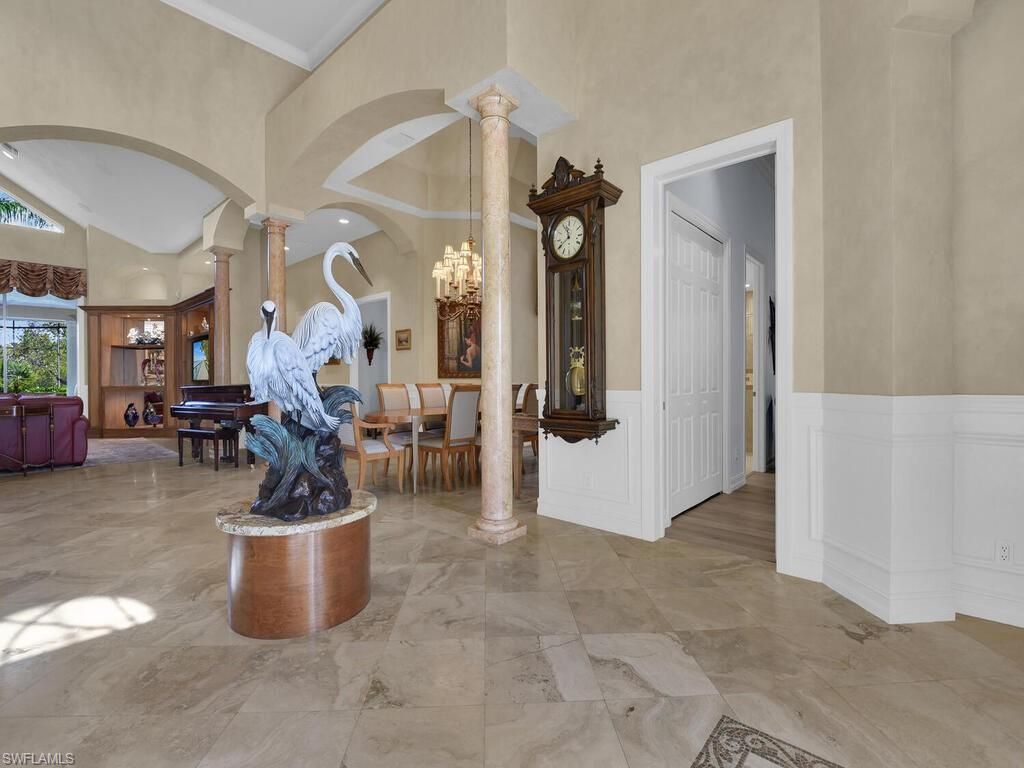 This well-maintained luxury home features a redesigned kitchen (2014) with premium finishes and an effortless flow into the main living areas. Travertine flooring runs through the main spaces, with porcelain tile in most bedrooms and high ceilings throughout. Additional features include built-in cabinetry in the great room and den, updated bathroom countertops, wainscoted walls, flooring, complete hurricane protection, two NEW AC systems installed in 2022, and a NEW ROOF in spring of 2025.The ou...This well-maintained luxury home features a redesigned kitchen (2014) with premium finishes and an effortless flow into the main living areas. Travertine flooring runs through the main spaces, with porcelain tile in most bedrooms and high ceilings throughout. Additional features include built-in cabinetry in the great room and den, updated bathroom countertops, wainscoted walls, flooring, complete hurricane protection, two NEW AC systems installed in 2022, and a NEW ROOF in spring of 2025.The outdoor living area is a standout feature, offering an extensive covered lanai, pool, spa, pool bath, and mature tropical landscaping. The home backs to a nature preserve, providing privacy and a quiet setting, along with a partial golf course view from the pool deck. Landscape lighting adds a clean, finished look to the gardens and preserve in the evening.Living in Bonita Bay means access to a wide range of amenities, including a private beach park, full-service marina, five championship golf courses, tennis and pickleball facilities, miles of walking and biking paths, and several beautifully maintained parks and nature preserves. It's a community known for its lifestyle, natural setting, and top-tier recreational options.