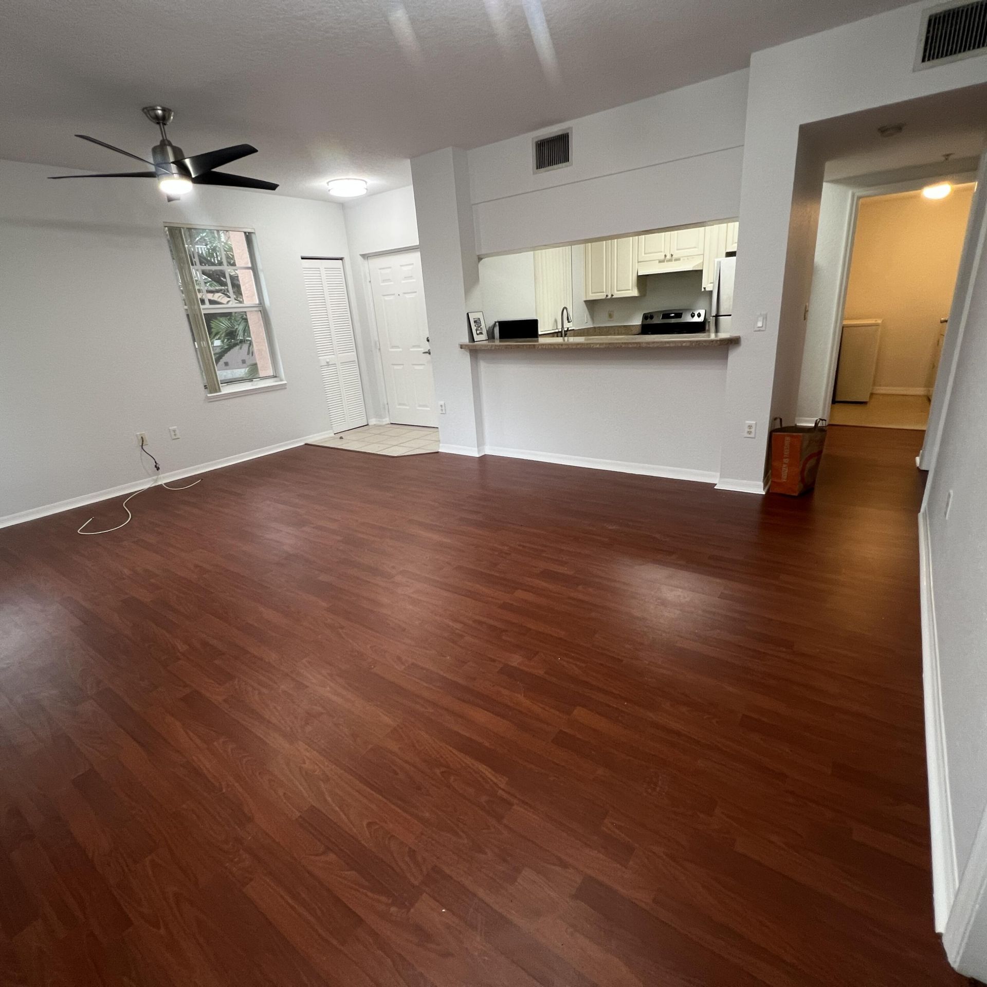 Spacious one bedroom apartment .Quiet and convenient Location. Gated community. Apartment located on 2nd floor. Fresh Paint and Laminated Wood floor throughout. New Stainless Appliances. New lighting and fixtures. Hurricane shutters for Patio. Full Size Washer and dryer inside the unit. Big walk-in closet. Community offers resort style pool area, hot tub, basketball court, business center, fitness room, picnic tables and grills scattered throughout the complex. Close to shopping and restaurant...Spacious one bedroom apartment .Quiet and convenient Location. Gated community. Apartment located on 2nd floor. Fresh Paint and Laminated Wood floor throughout. New Stainless Appliances. New lighting and fixtures. Hurricane shutters for Patio. Full Size Washer and dryer inside the unit. Big walk-in closet. Community offers resort style pool area, hot tub, basketball court, business center, fitness room, picnic tables and grills scattered throughout the complex. Close to shopping and restaurants. Association REQUIRES minimum of 680 credit score. 2adult max. One assigned parking spaces and plenty guest parking. Pet with deposit. Txt agent for lbx combo. Spacious apartment, community has a resort style pool. Quiet and high secure community,