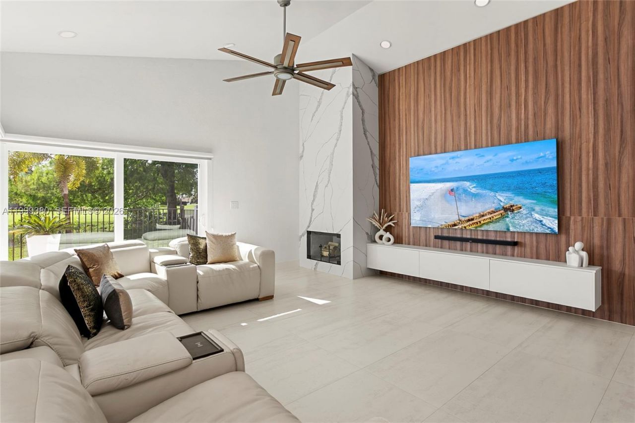 Step into luxury with this stunning, fully upgraded waterfront residence, where modern design meets cutting-edge smart living. Turnkey home, freshly painted inside and out, offering elegance, comfort, and innovation?enhanced by beautifully updated landscaping, a two-car garage, and breathtaking water and golf course views in the rear.Rectified Italian porcelain tile flooring throughout, completely renovated home. State-of-the-art chefs kitchen, with custom cabinetry, striking quartz waterfall co...Step into luxury with this stunning, fully upgraded waterfront residence, where modern design meets cutting-edge smart living. Turnkey home, freshly painted inside and out, offering elegance, comfort, and innovation?enhanced by beautifully updated landscaping, a two-car garage, and breathtaking water and golf course views in the rear.Rectified Italian porcelain tile flooring throughout, completely renovated home. State-of-the-art chefs kitchen, with custom cabinetry, striking quartz waterfall countertops, and brand-new 2024 appliances. Beautiful chimney.Impact windows throughout, a 2023 foam-insulated attic, a 2023 water heater, and a high-performance HVAC system. Fully equipped smart lighting system, smart sprinkler control panel, smart pool controls, and a unified security system for ultimate convenience and security.Primary suite features a large bedroom, custom walk-in closets, beautifully remodeled, modern-designed bathrooms with high-end finishes. Spacious second bedroom with walk-in closets. Additional upgrades include new interior doors, renovated laundry room with cabinetry, designer lighting fixtures and window treatments.Wine enthusiasts will love the climate-controlled, state-of-the-art wine cellar. Outdoor living with a pool, new outdoor cooktop, and water and golf course views. This residence offers the ultimate in luxury, technology, and lifestyle. A rare waterfront and golf course view opportunity?schedule your private showing today.