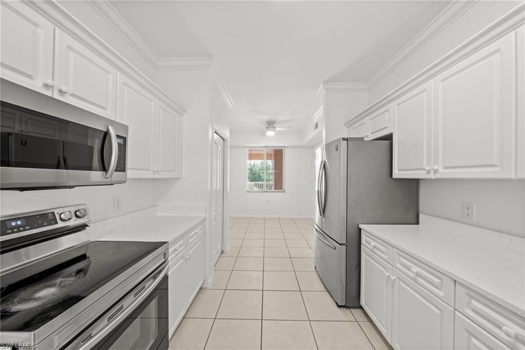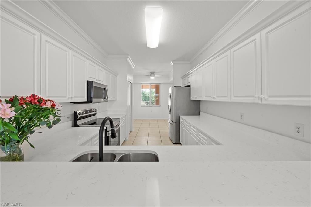 **Updated and move-in ready with fresh white paint and quartz countertops** Dont pass u this value-packed condo! This spacious 2-bedroom + den, 2-bath end-unit condo in gated Osprey Cove offers easy Florida living with a comfortable layout, tasteful improvements, and excellent value in Estero. With 1,418 square feet, tile flooring throughout, peaceful lake views, southwest exposure, and an open design that lives well, this home is a great fit for both full-time residents and seasonal owners. ...**Updated and move-in ready with fresh white paint and quartz countertops** Dont pass u this value-packed condo! This spacious 2-bedroom + den, 2-bath end-unit condo in gated Osprey Cove offers easy Florida living with a comfortable layout, tasteful improvements, and excellent value in Estero. With 1,418 square feet, tile flooring throughout, peaceful lake views, southwest exposure, and an open design that lives well, this home is a great fit for both full-time residents and seasonal owners. The kitchen has been refreshed with UNUSED quartz countertops, a new sink, and a new faucet, creating a clean and inviting focal point for the main living area. Interior painting has been completed throughout, including the ceilings, closets, and crown molding in the main living space, giving the home a bright, well-kept feel. In the primary bathroom, improvements include a new mirror and replaced shower door, while the guest bathroom has been refreshed with a newly painted tub. A new smart lock adds convenience and peace of mind. Additional features that add long-term value include impact-resistant windows, new blinds throughout, a 2017 furnace, water heater replaced in 2021, washer replaced in 2024, and dryer replaced in 2025. Elevator access makes coming and going easy, and the added storage unit just steps from the front door is a major bonus for beach gear, luggage, seasonal items, or everyday storage. The unit is vacant and ready for immediate enjoyment. Osprey Cove also stands out for its value, with major community improvements already completed, including new roof tiles and exterior painting in 2024. Residents enjoy a gated setting and community amenities in a location close to everything that makes Southwest Florida so appealing, including Gulf beaches, RSW International Airport, and quick access to I-75.